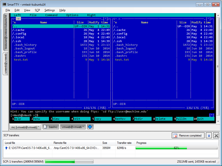 SmarTTY é um cliente SSH multi-tabbed, gratuito, que suporta a cópia de arquivos e diretórios com SCP em modo “on-the-fly” e edição de arquivos “in-place”. A maioria dos servidores SSH pode suportar até 10 sub-sessões por conexão. Neste sentido, SmarTTY faz o melhor que estiver dentro de suas capacitações: independente de quantas janelas estiverem abertas, não há necessidade de fazer login de novo, basta abrir uma nova guia e seguir em frente.